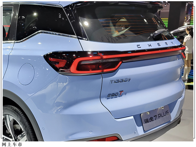 从实拍图来看,奇瑞瑞虎7 PLUS配备了超大尺寸的多边形进气格栅,格栅内部采用菱形网格与亮色点阵设计,周边为亮黑色烤漆装饰,大灯造型狭长且经过了深度熏黑处理,雾灯区域造型优化,嵌有竖置的LED雾灯,前唇边缘点缀了一条粉色装饰带。侧面采用了悬浮车顶设计,银黑双色轮毂增添外观的精致度。贯穿式尾灯上方贴有“CHERY”,排气采用双边共两出布局。