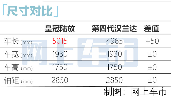 皇冠陆放是基于海外全新汉兰达运动版打造而来,整车运动风格相比汉兰达更强,前脸配有六边形进气格栅,内部由蜂窝状结构装饰,上方还悬挂了皇冠系列独有的LOGO标识。车侧及车尾与全新汉兰达基本保持一致,不过由于外观套件不同,新车尺寸会略大于全新汉兰达。内饰上,新车设计与全新汉兰达相同,装配12.3英寸全液晶仪表及12.3英寸中控屏,并提供了多处储物空间,不规则的造型让整体层次感更强。