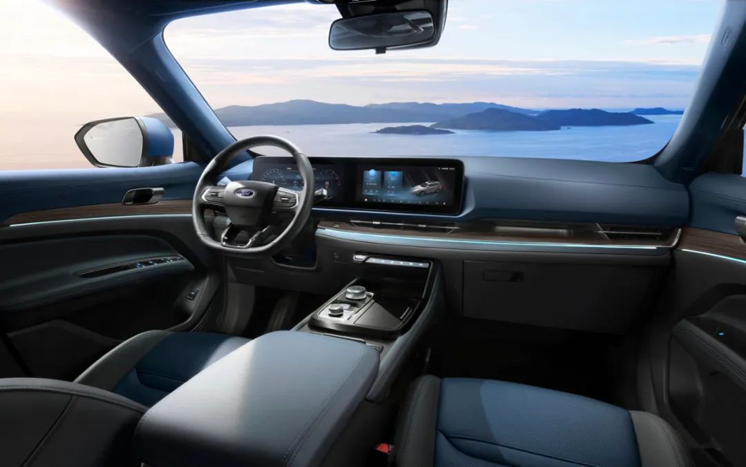江铃福特领睿则是采用了风靡一时的悬浮一体式智联屏设计,双12.3英寸全液晶仪表+中控屏的搭配,赋予了整个车内非常强的科技感,并且在内饰材料上大量采用了绿色原生态材料更环保,也更利于乘客健康,内饰的隔音棉、隔音垫、立柱饰板等细节之处,均采用低气味环保材料大面积的真皮、钢琴烤漆和木纹饰板进行包裹,在车厢质感与环保方面的表现远超同级,带来了更加高级舒适的享受。
