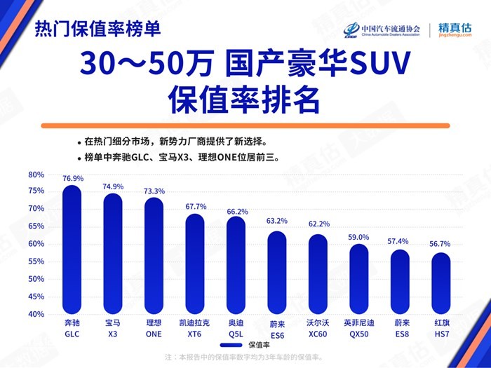 买豪车不看保值率,卖车的时候指定得悔青肠子。因为如果豪车的保值率过低,在换购时的损失要远大于普通车型。今天我找来了最新的30-50万元国产豪华SUV保值率排行榜,希望能帮助大家在选购车辆时,提供一些有价值的参考。有多款自主品牌车型上榜,其中理想ONE更是挤进了前三,表现比较亮眼。